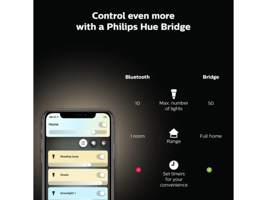 • Kan udvides med Hue Bridge for fuld smart-home integration
