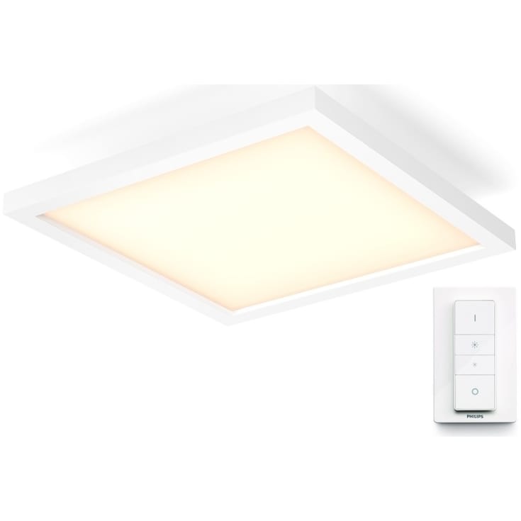 Oplev, hvordan lys kan forandre stemningen i dit hjem med Philips Hue Aurelle – et moderne loftpanel, der kombinerer elegant design med avanceret teknologi. Aurelle giver dig mulighed for at skræddersy belysningen præcis efter dit behov – uanset om du ønsker et klart, fokuseret arbejdslys eller et varmt, hyggeligt skær til afslappende stunder.