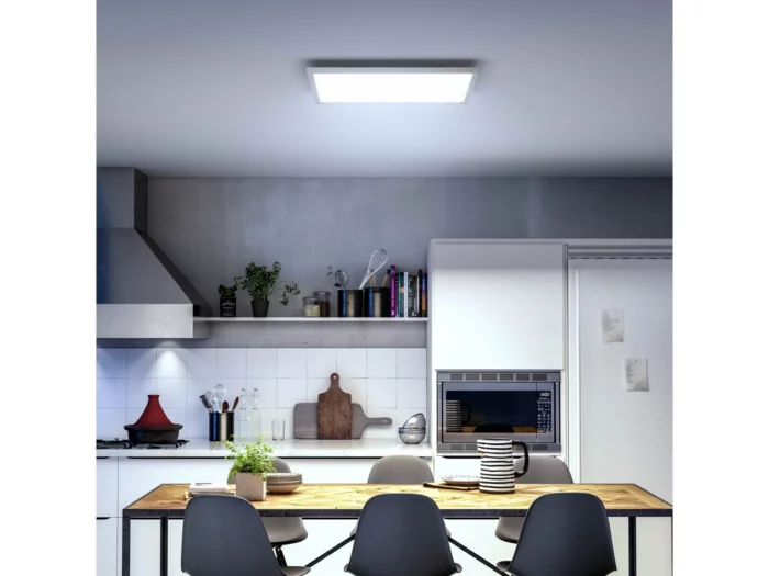 Takket være Philips Hue White Ambience-teknologien kan du nemt justere både lysstyrke og farvetemperatur fra 2200 til 6500 Kelvin. Med et enkelt tryk skifter du fra køligt dagslys, der øger koncentrationen, til blødt, varmt lys, som skaber en rolig atmosfære om aftenen. Aurelle leverer op til 2200 lumen, hvilket gør den ideel til både kontor, køkken eller stue.