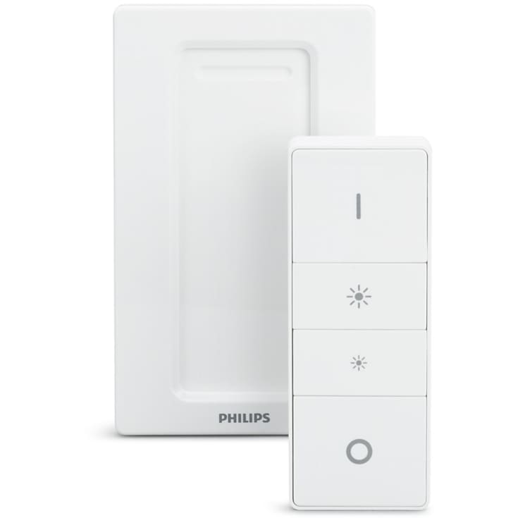 Med den medfølgende trådløse lysdæmper kan du styre lyset, præcis som du vil. Den batteridrevne switch kan placeres hvor som helst – på væggen, på et magnetisk underlag eller bruges som en praktisk fjernbetjening. Du kan nemt skrue op og ned for lysstyrken eller skifte farvetemperatur uden at rejse dig fra sofaen.