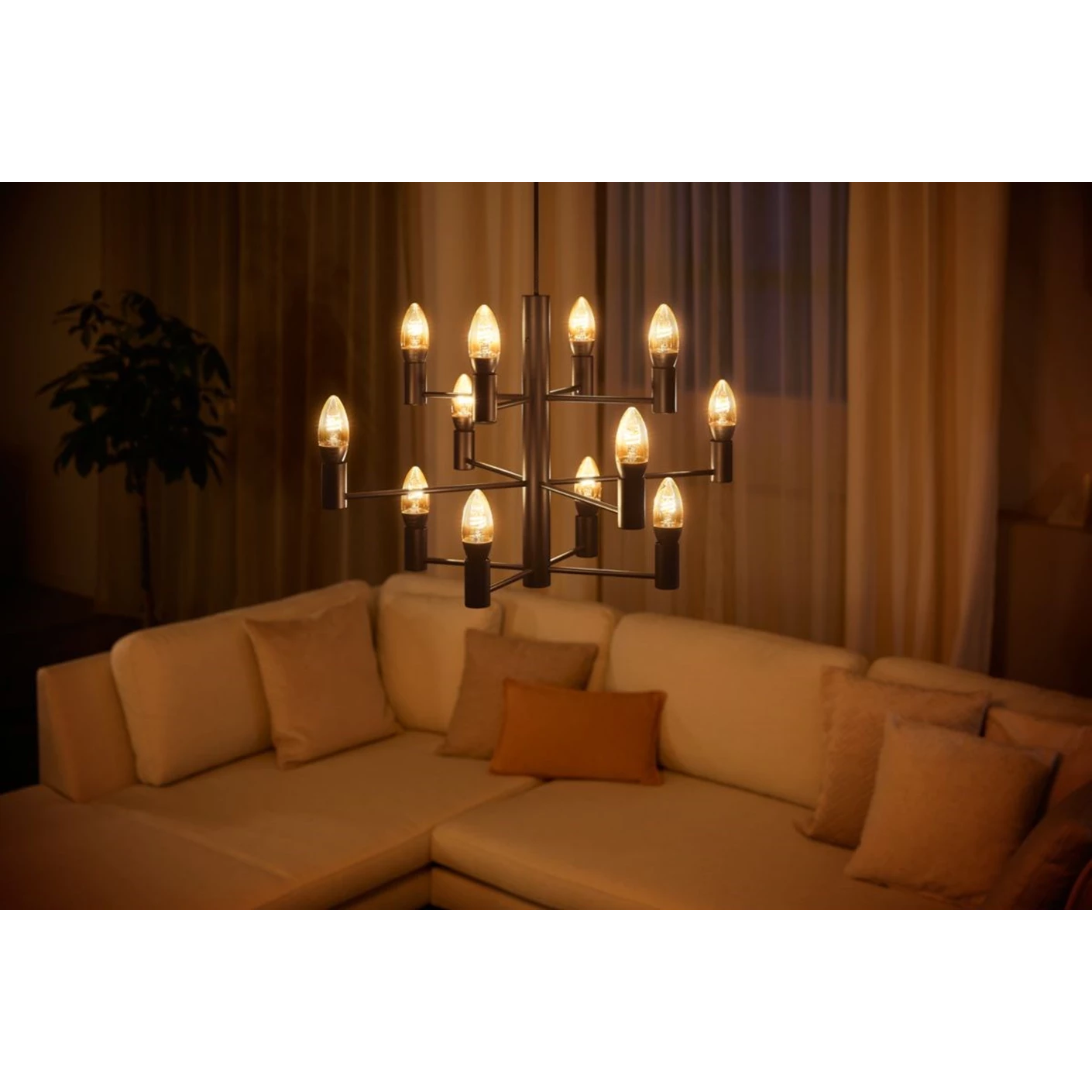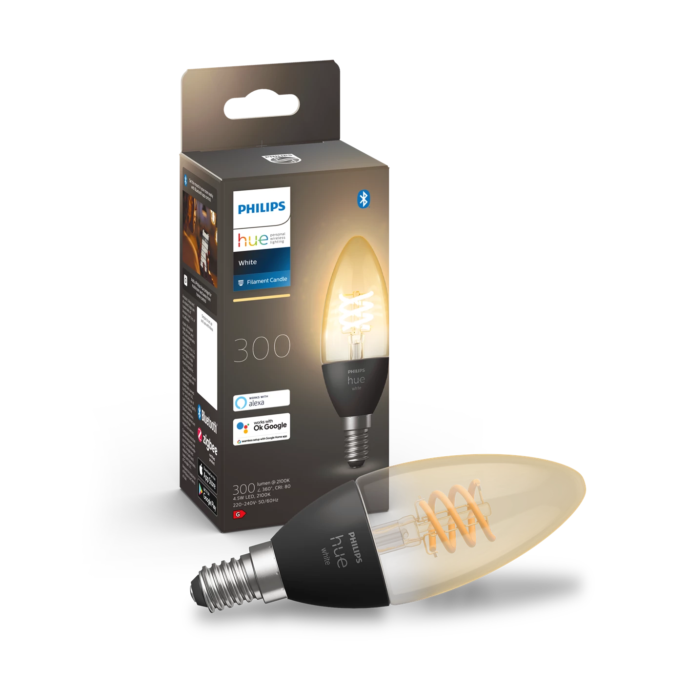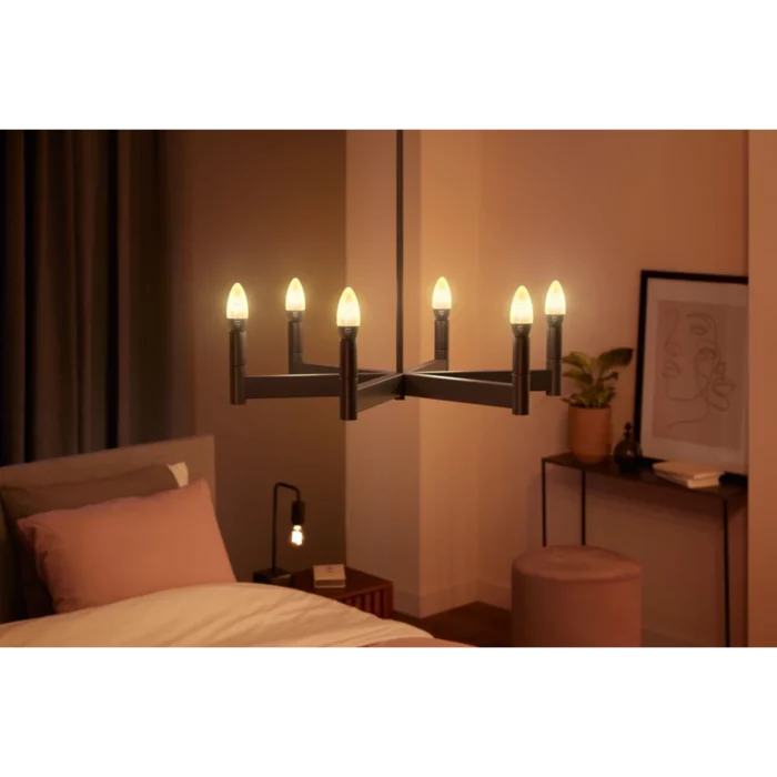 Den elegante pære er fremstillet i glas med et klassisk filament-design og passer perfekt i E14-fatninger. Den fungerer både via Bluetooth til direkte styring og Zigbee for mere avancerede funktioner gennem Hue Bridge, hvilket giver fleksibilitet og fremtidssikret smart belysning.