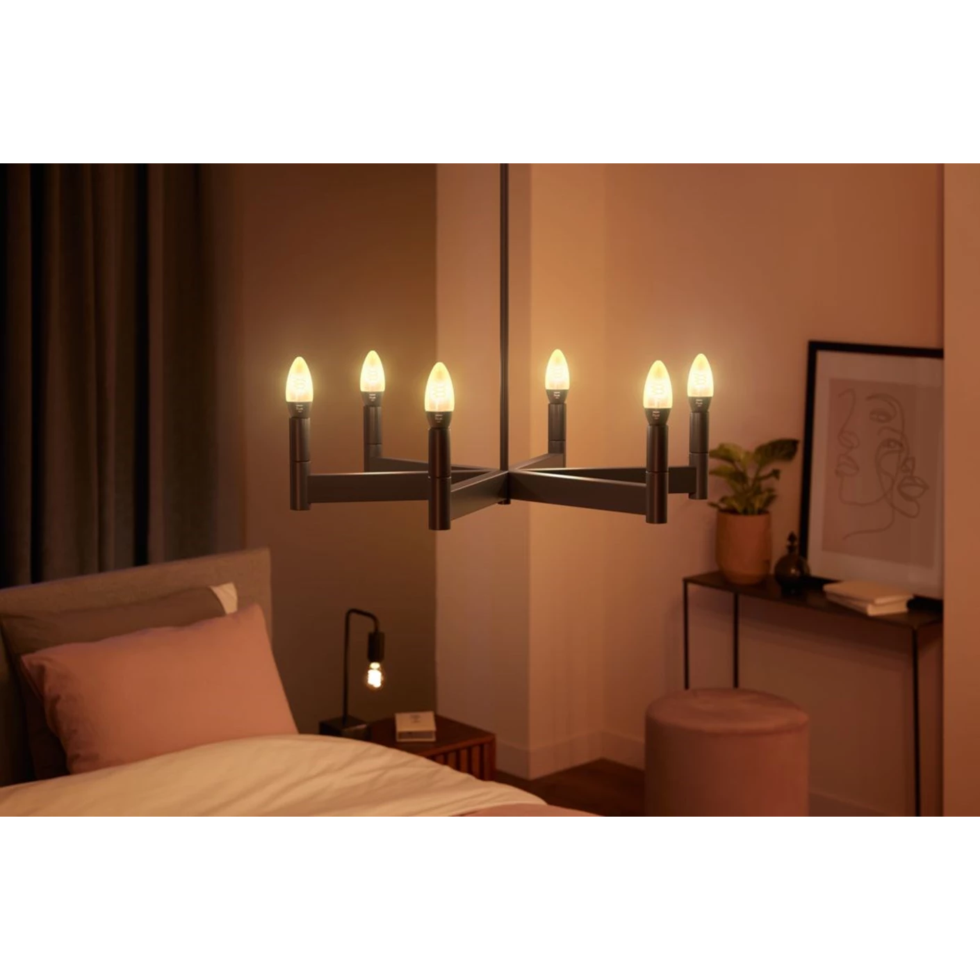 Oplev den perfekte kombination af klassisk design og moderne smart-teknologi med Philips Hue Smart LED-filamentpære (E14).