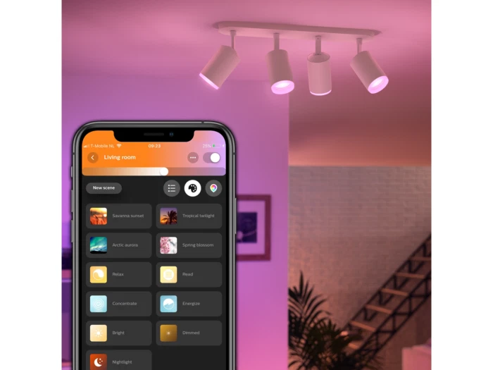 Styr Fugato-spottene direkte via Bluetooth på din smartphone med den gratis Hue-app. Du kan tilføje op til 10 lyskilder i samme rum og kontrollere dem individuelt eller samlet.