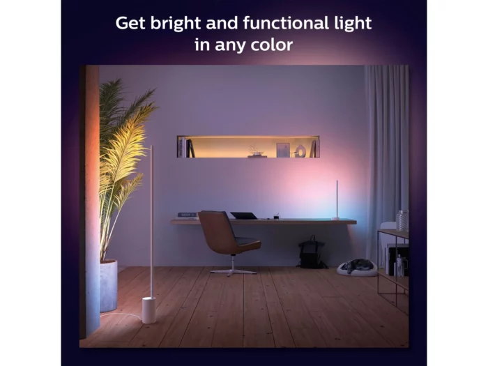 Philips Hue Gradient Signe er ikke bare en lampe – det er en oplevelse. Det intelligente Gradient LED-modul skaber smukke, flerfarvede lystemaer, der flyder naturligt sammen, og når lampen placeres mod væggen, spreder den et kraftfuldt og indirekte lys, der bader rummet i farver. Perfekt til hjørner i stuen, ved skrivebordet eller som centerpiece i din hjemmebiograf eller gaming-setup. Synkroniser lampen med Hue Sync, HDMI Sync Box eller Hue desktop app, og lad lyset reagere dynamisk på film, musik og spil – et fuldt immersivt lysshow, der løfter underholdningen til nye højder.