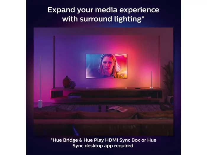 Synkroniser lys med underholdning – film, musik, TV og spil via Hue Sync (kræver Hue Bridge).