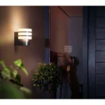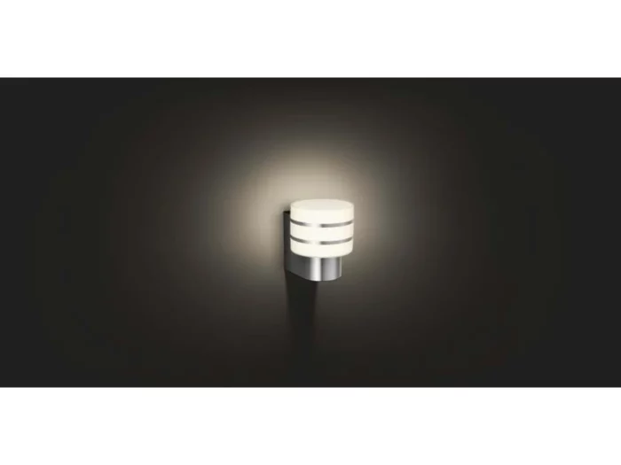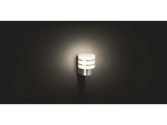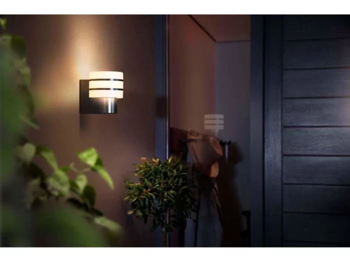 Philips Hue Outdoor Tuar Væglampe – Smart udendørsbelysning i børstet stål.