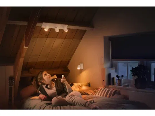 De justerbare spots i hvidt design gør det nemt at rette lyset præcis, hvor du ønsker det. Brug den medfølgende Hue Dimmer Switch eller styr lamperne via Bluetooth på din smartphone for øjeblikkelig kontrol. Tilføj en Hue Bridge, og lås op for hele spektret af smarte funktioner, inklusiv fjernbetjening, automatisering og integration med dit smart home-system.