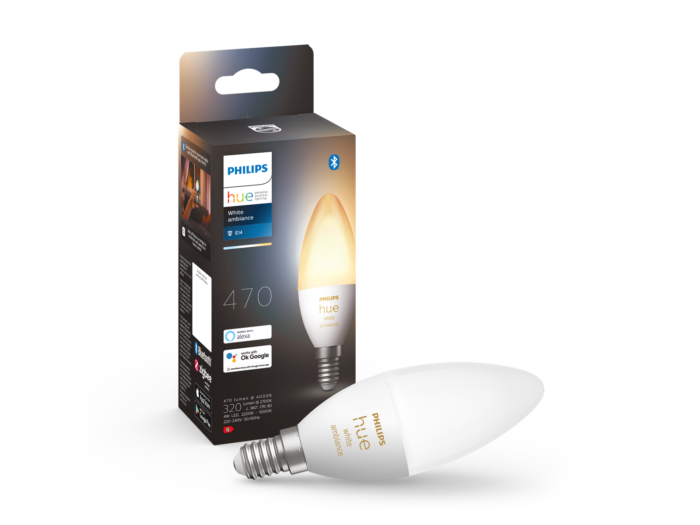 Oplev fuld kontrol over dit lys med Philips Hue Smart LED-pæren (B39, E14).