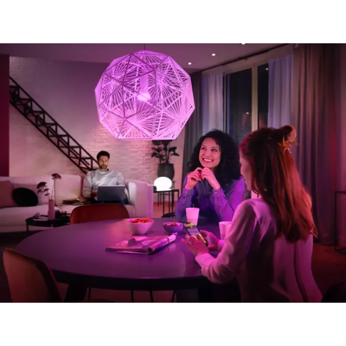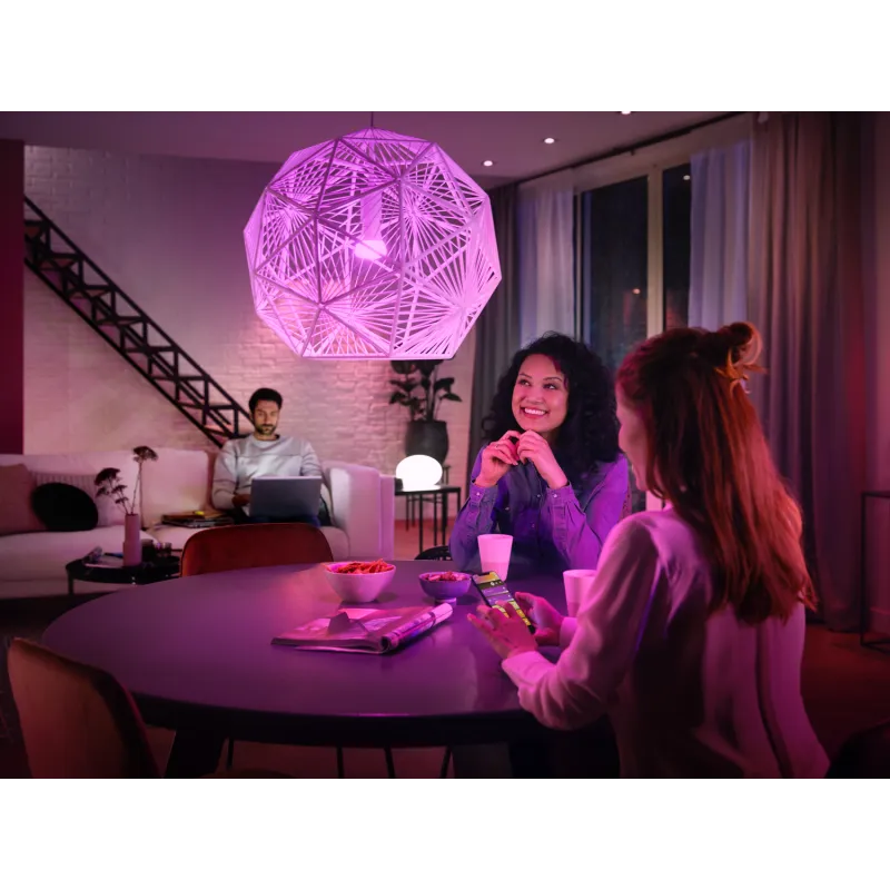 Med Philips Hue White and Color Ambiance kan du skabe præcis den atmosfære, du ønsker. Vælg mellem over 16 millioner farver og justér lysets styrke, tone og temperatur – fra varmt og hyggeligt skær til køligt, energigivende hvidt lys. Uanset om du vil skabe et roligt miljø til afslapning, et inspirerende lys til arbejde eller en festlig stemning, er mulighederne uendelige.