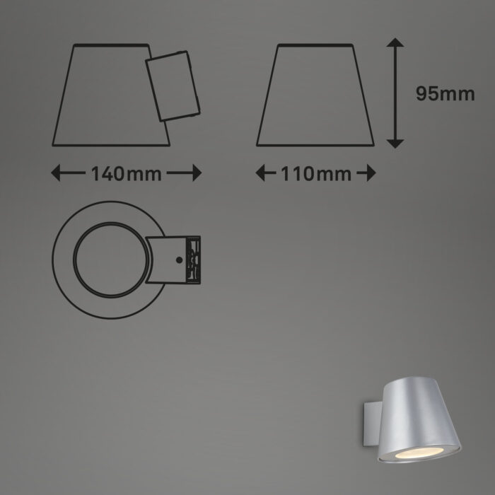 Med sine kompakte mål på 9,5 x 11 x 14 cm passer denne væglampe perfekt til både små og store udendørsarealer. Den nemme vægmontering gør installationen hurtig og problemfri.