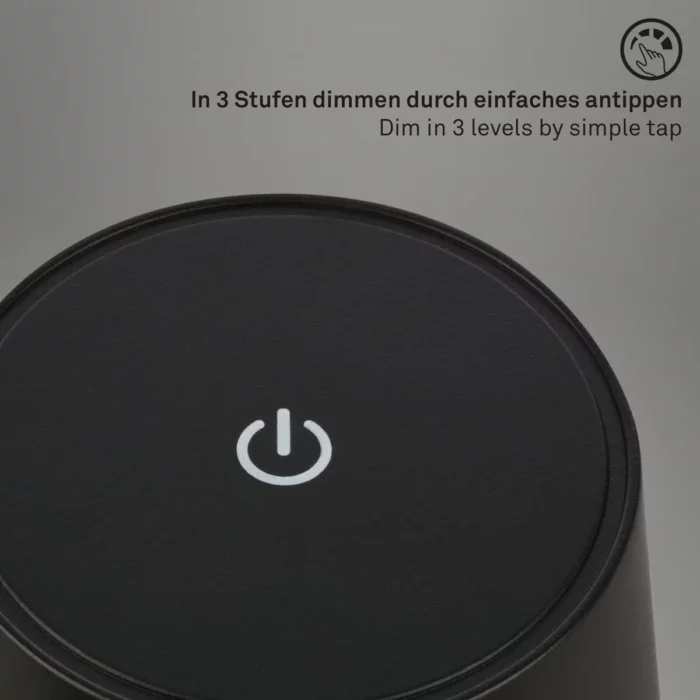 Den trådløse bordlampe har en indbygget dæmperfunktion, som giver dig mulighed for at justere lysstyrken i tre niveauer via touch-kontrol. På den måde kan du nemt tilpasse belysningen efter behov – fra praktisk arbejdslys til blød, hyggelig belysning. Opladning sker via det medfølgende USB-C-kabel, og det kraftfulde batteri sikrer en driftstid på op til 21 timer ved lav lysstyrke, så du kan nyde lyset hele aftenen uden bekymringer.