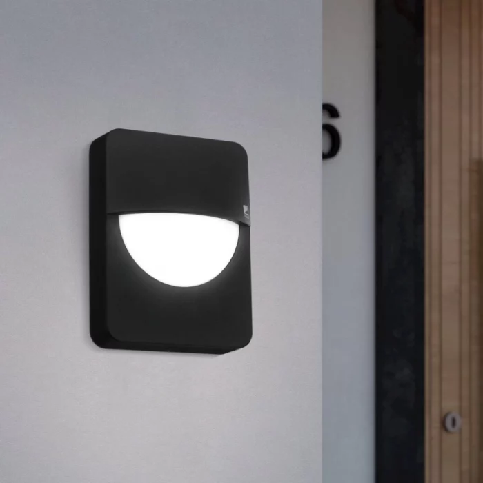 Skab en hyggelig og tryg atmosfære omkring dit hjem med Eglo udendørs væglys. Med sit enkle, moderne design i sort plast er denne lampe en både stilfuld og praktisk løsning til belysning af din terrasse, indgangsparti eller have.