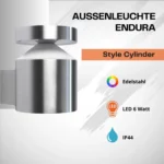 Ledvance Endura Style Cylinder Wall – Elegant udendørs LED-væglampe i rustfrit stål.
