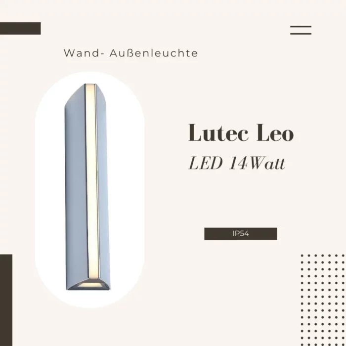 Skab stemningsfuld belysning i haven, indkørslen eller på terrassen med Leo fra Lutec – en udendørslampe, der kombinerer moderne design, holdbarhed og energieffektivitet.