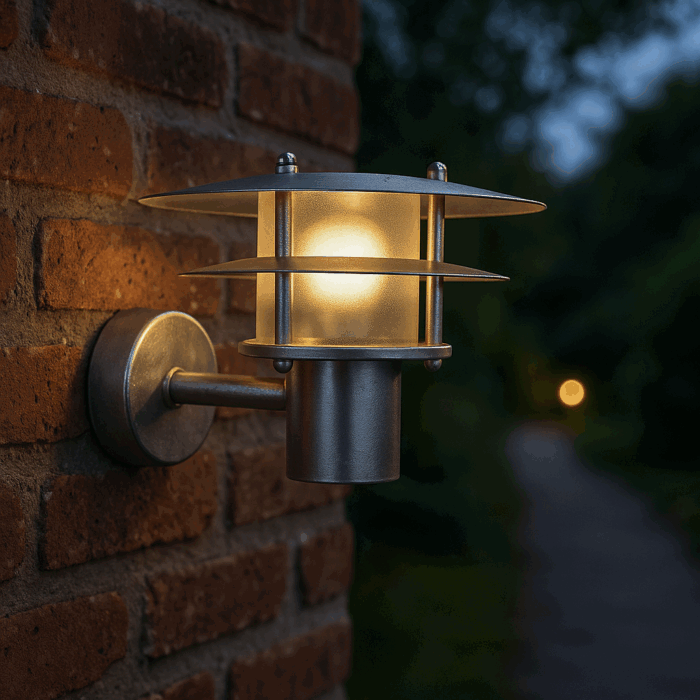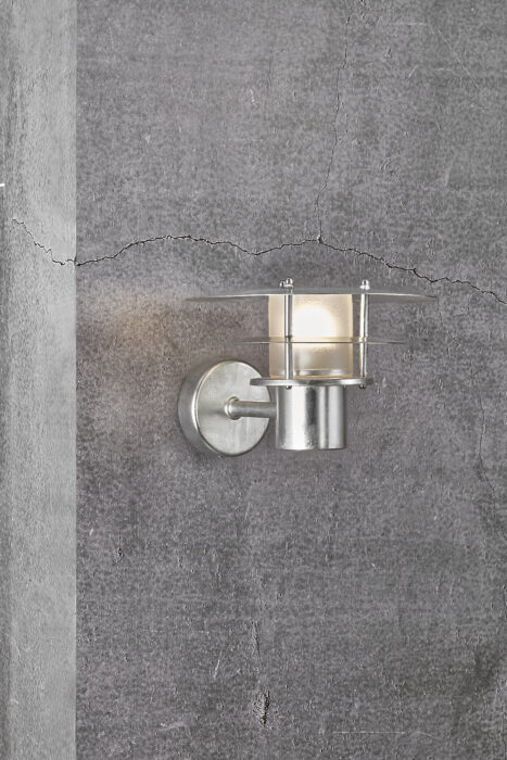 Den smukke og holdbare version i galvaniseret stål er specielt velegnet ved havets barske vejr og forhold. Nordlux tilbyder 15 års garanti på galvaniseret stål. Garantien gælder for omfattende korrosion i form af huller i metallet forårsaget af rust.