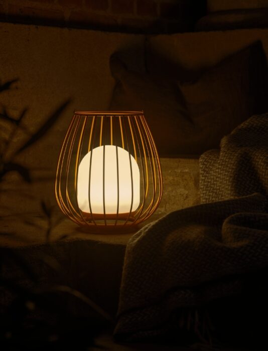 Nordlux Jim To-Go i orange er en stilfuld og funktionel batterilampe, der kombinerer dansk design med maksimal fleksibilitet. Designet af den anerkendte designduo Says Who, er lampen skabt med en blød, afrundet silhuet og et praktisk håndtag, som gør den nem at tage med overalt – fra terrassen og altanen til haven eller picnicen.