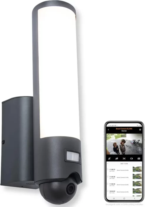 Lutec Elara er en moderne og effektiv udendørslampe udviklet til dig, der ønsker både sikkerhed og smuk belysning. Med sit integrerede kamera, intercom og avancerede bevægelsesdetektor kombinerer Elara funktionalitet, tryghed og design i én komplet løsning. Lampen er fremstillet i robust metal og plastik, der sikrer lang holdbarhed og modstandskraft mod vind og vejr – perfekt til indkørsel, indgangspartier, garage og terrasseområder.
