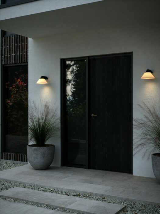 Nordlux Linas er en stilren og funktionel udendørs væglampe i sort aluminium, designet med et strømlinet, konisk udtryk, der passer perfekt til moderne boliger. Den brede skærm sikrer en jævn og behagelig lysfordeling, som skaber tryghed og atmosfære ved hoveddøren, på terrassen eller langs gangstier og indkørsler.