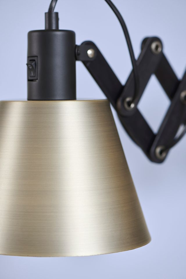Halo Design Vintage sakselampe i sortolieret træ og messing. Dansk væglampe med justerbar saksearm, E27 fatning og 2 m ledning.