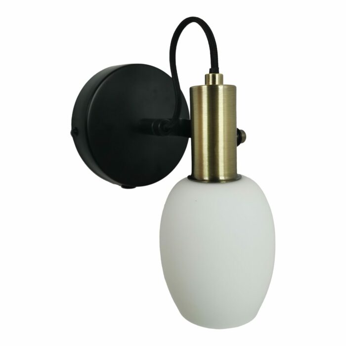 Nordlux Arild væglampen kombinerer moderne elegance med rå industrielle detaljer. Den smukke runde skærm i mundblæst opalhvidt glas står i flot kontrast til de brunlige messingdetaljer og den matte sorte finish. Lampen er ideel som læselampe ved sengen eller som stemningsfuldt lys i stuen, da lampehovedet kan justeres, så du får et præcist og retningsbestemt lys.
